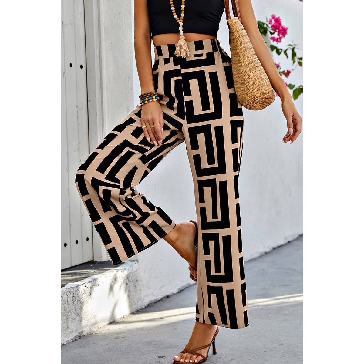 Geometric Color Block A Line Wide Leg Loose Pants