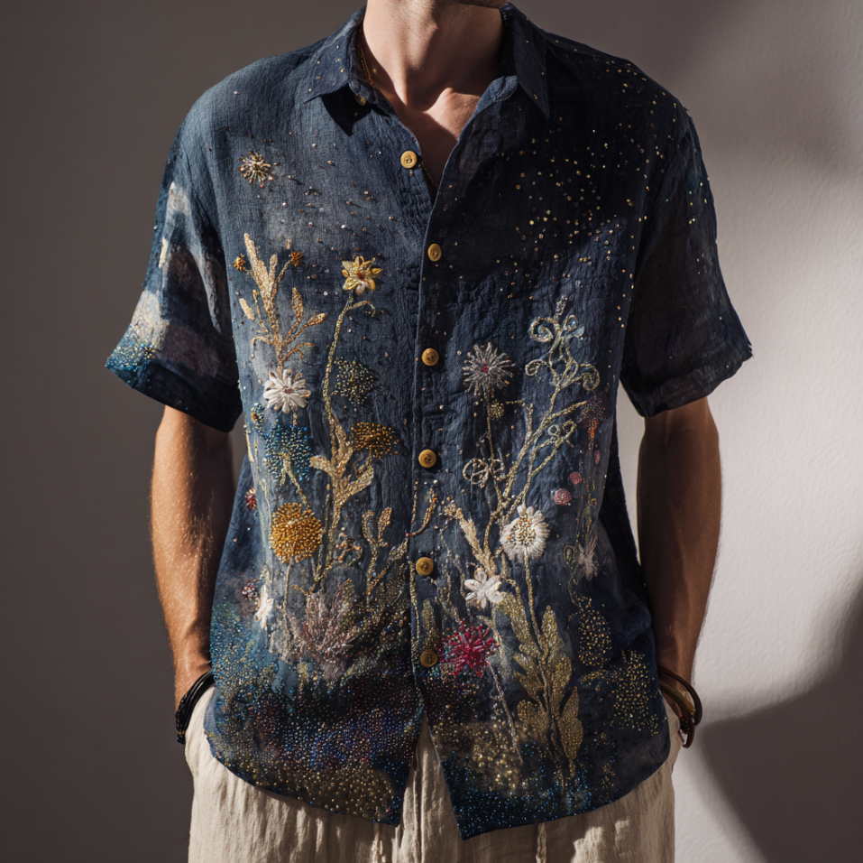 Bohemian Style Plant And Flower Pattern Men's Retro Cotton And Linen Shirt