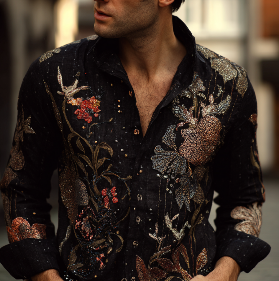 Bohemian Style Plant And Flower Pattern Men's Retro Cotton And Linen Shirt