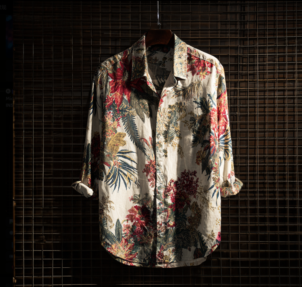 Bohemian Style Plant And Flower Pattern Men's Retro Cotton And Linen Shirt