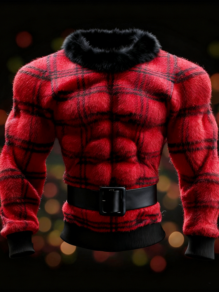 Christmas Men's Simulated Muscle Lines Design Flannel Sweatshirt