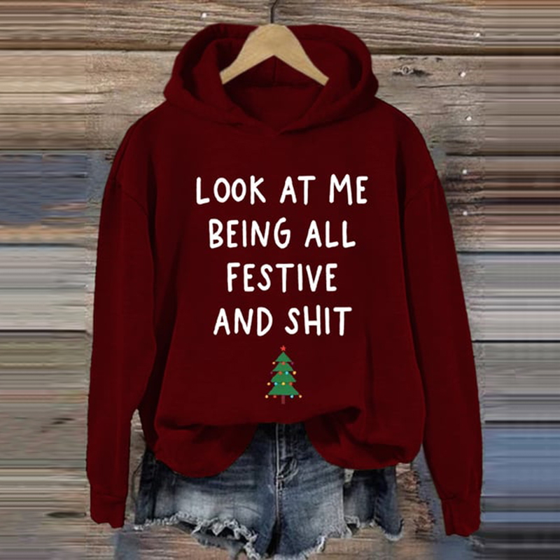 Christmas Printed Long Sleeve Hoodie