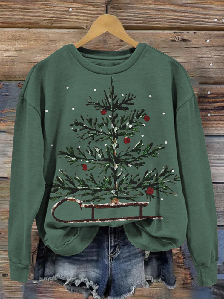 Christmas Sleigh & Tree Art Comfy Sweatshirt