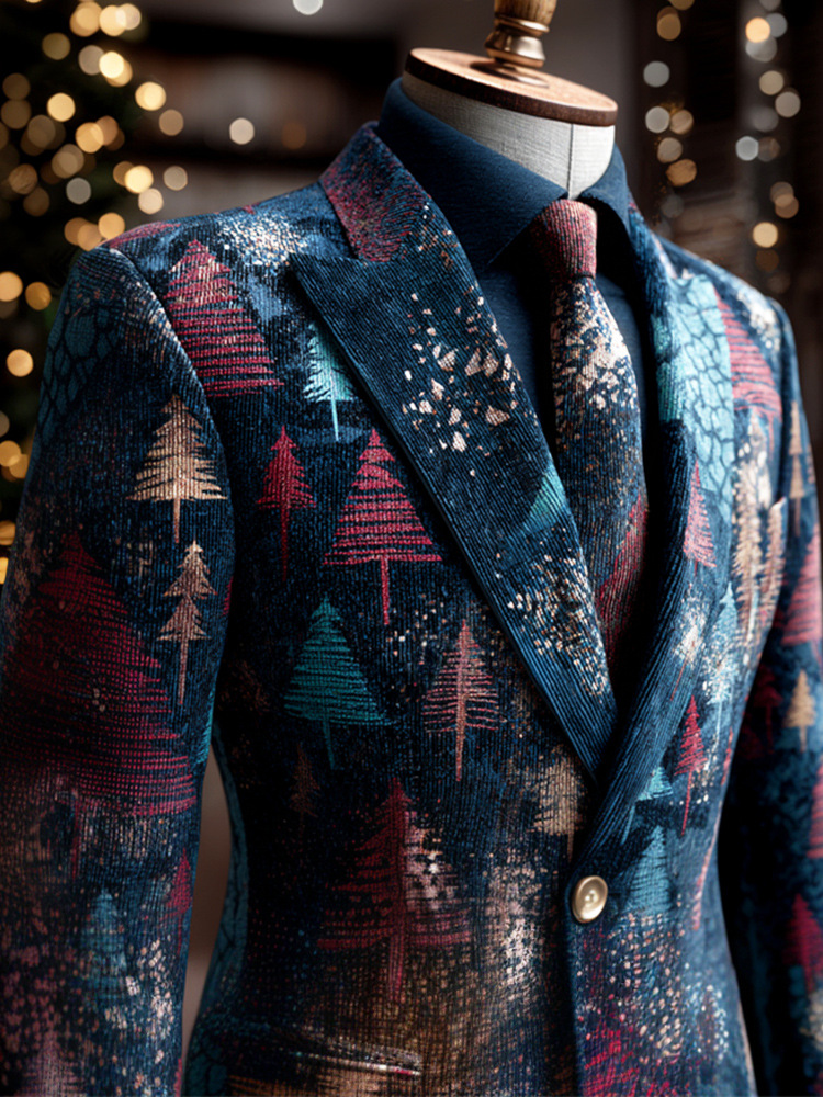 Christmas Tree Pattern Design Men's Corduroy Suit