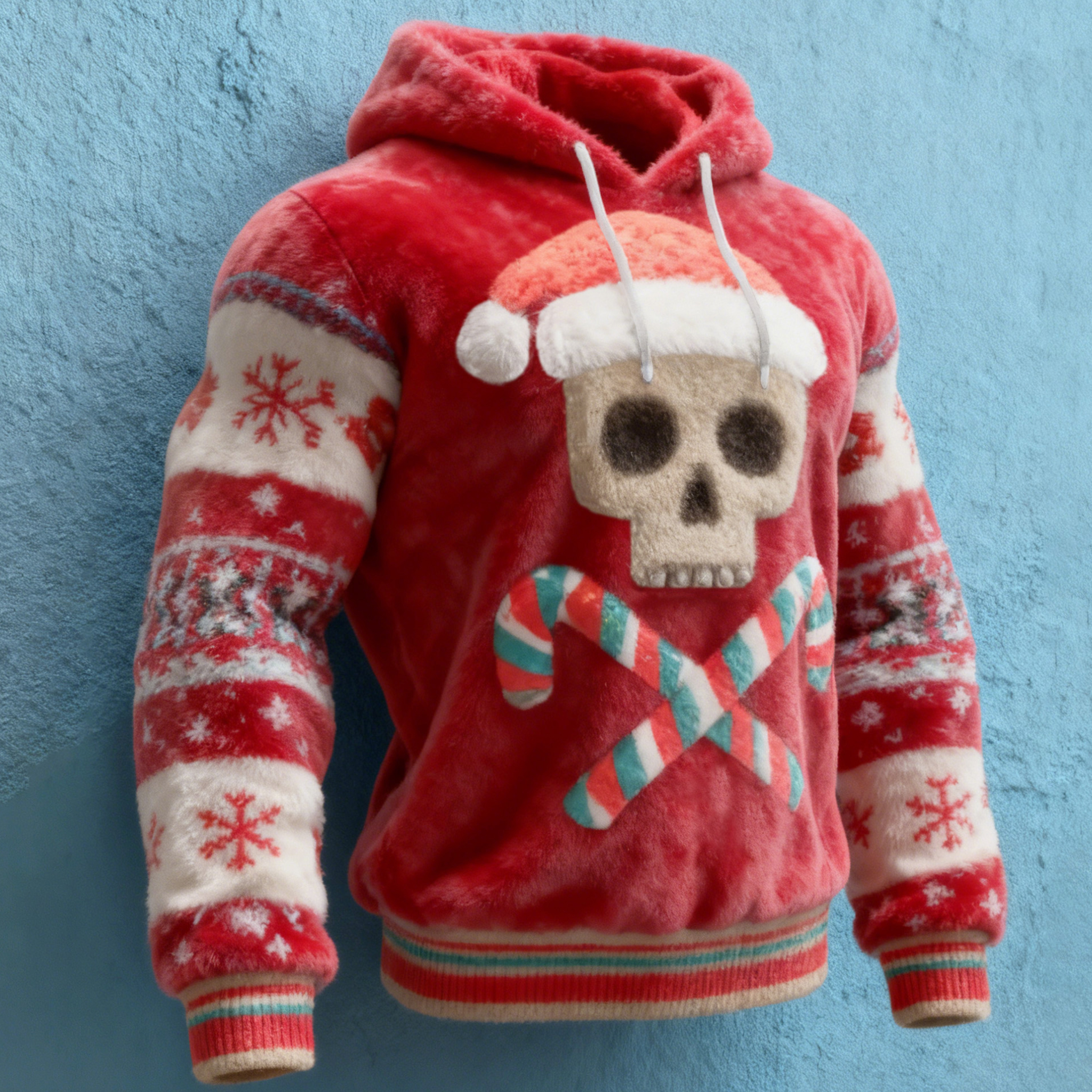 Fun Christmas Skull Men's Flannel Hoodie