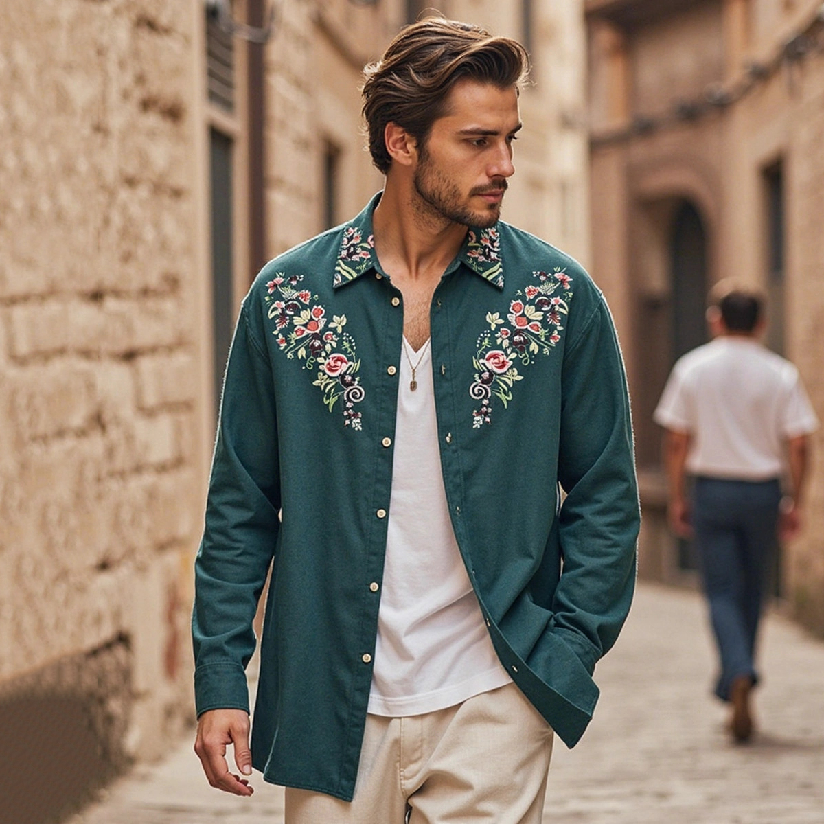 Men's Bohemian Embroidered Linen Long Sleeve Shirt