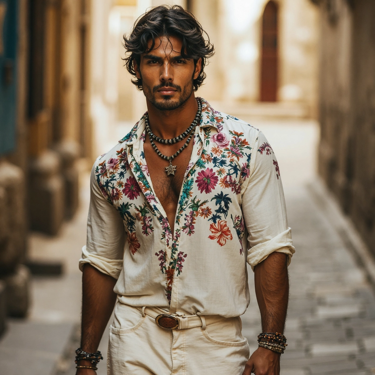 Men's Bohemian Floral Casual Linen Shirt