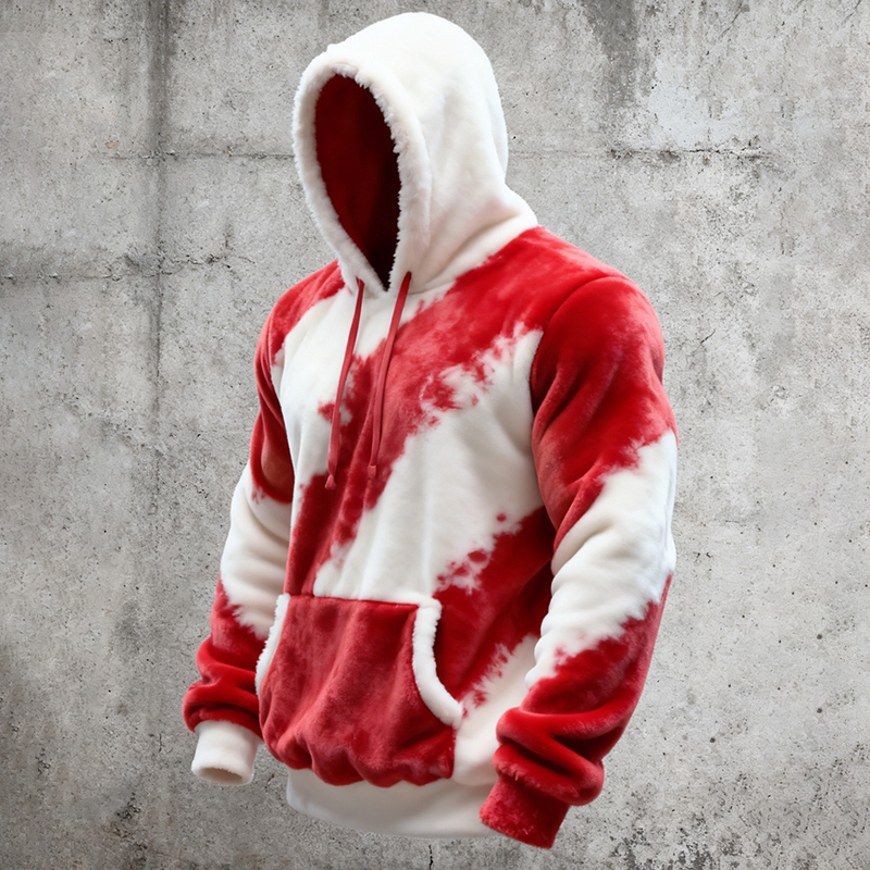 Men's Christmas Color Block Striped Flannel Hoodie