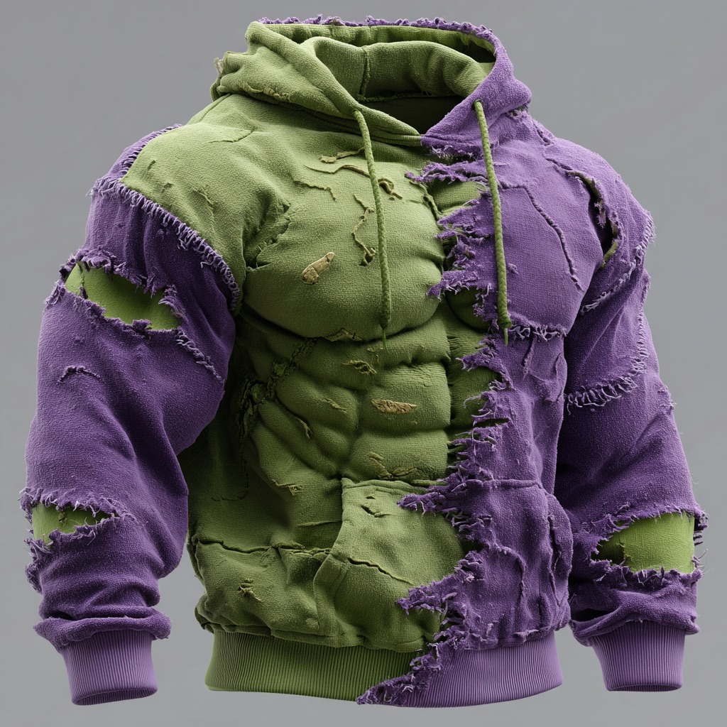 Men's Christmas Green Muscle Line Stitching Distressed Hoodie