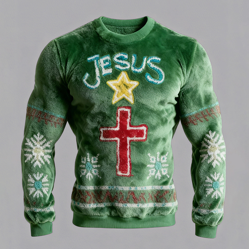 Men's Christmas Jesus Comfortable Crew Neck Plush Sweatshirt