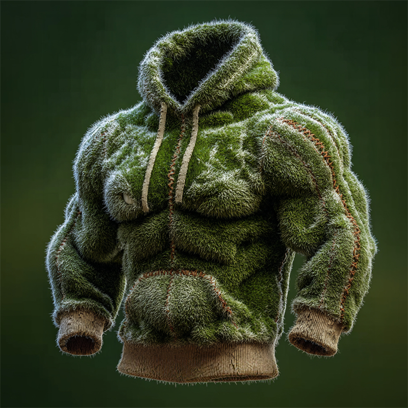 Men's Christmas Season Green Muscle Stitched Cozy Plush Hoodie