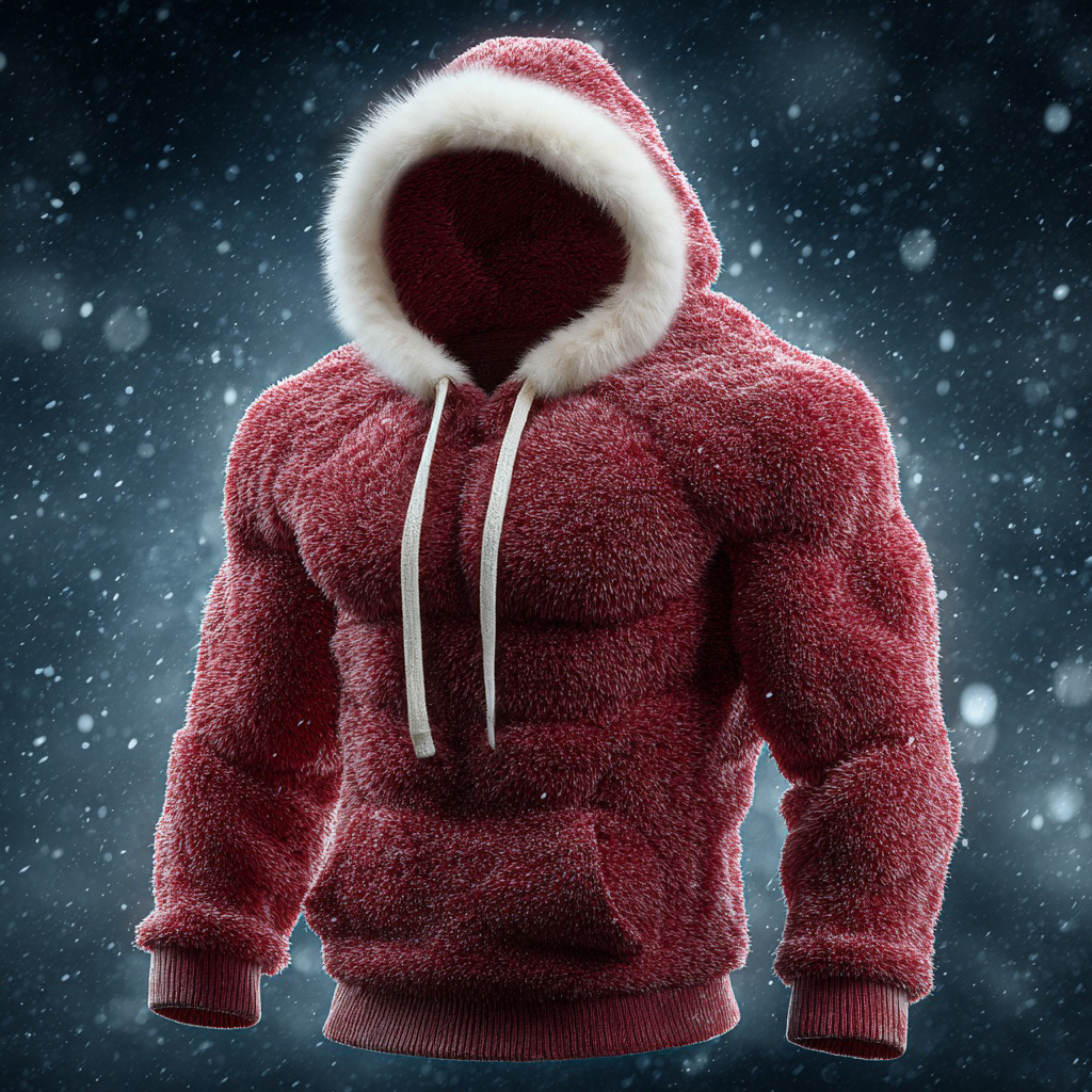Men's Christmas Season Red Muscle Art Cozy Hooded Sweater
