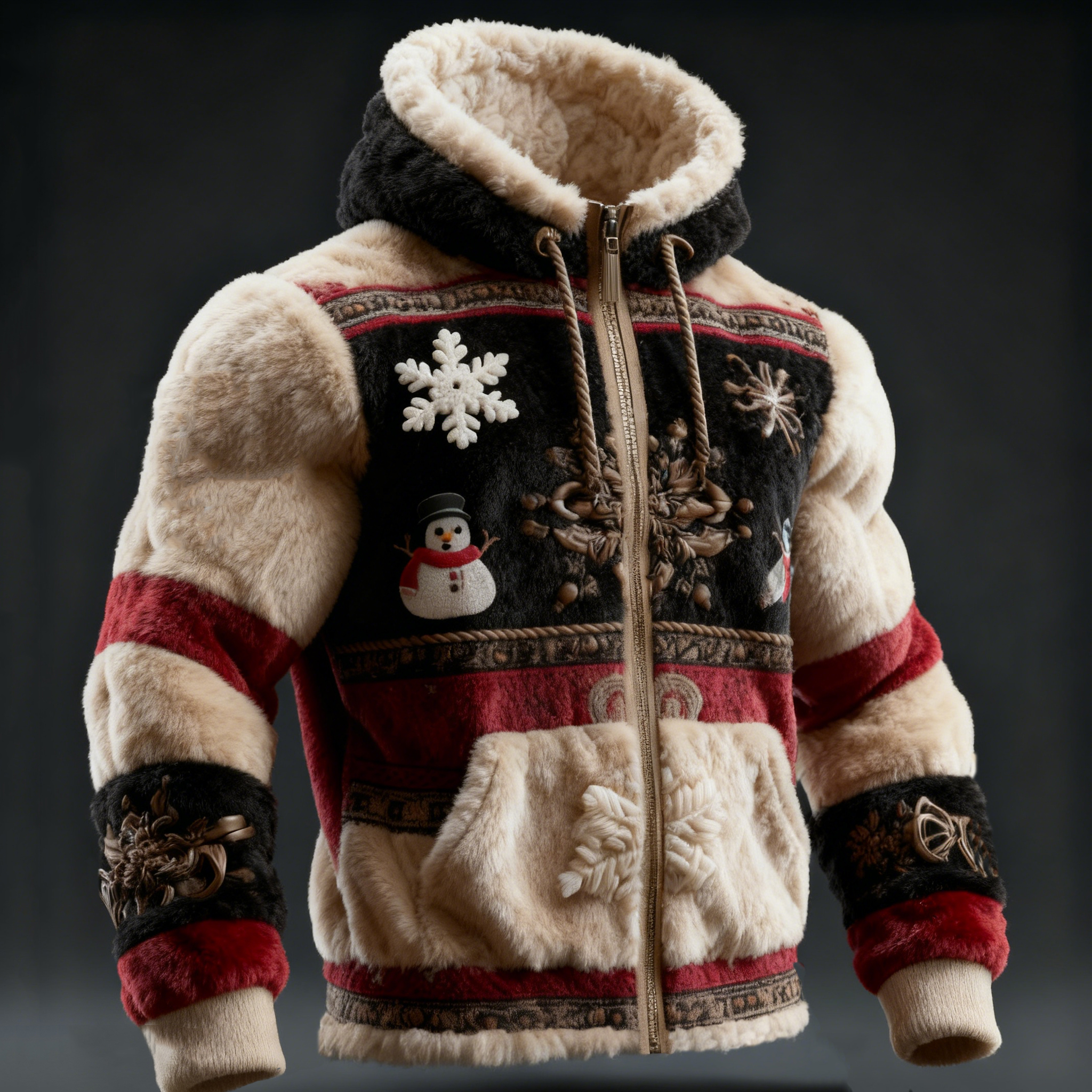 Men's Christmas Snowflake Snowman Plush Zip Hoodie