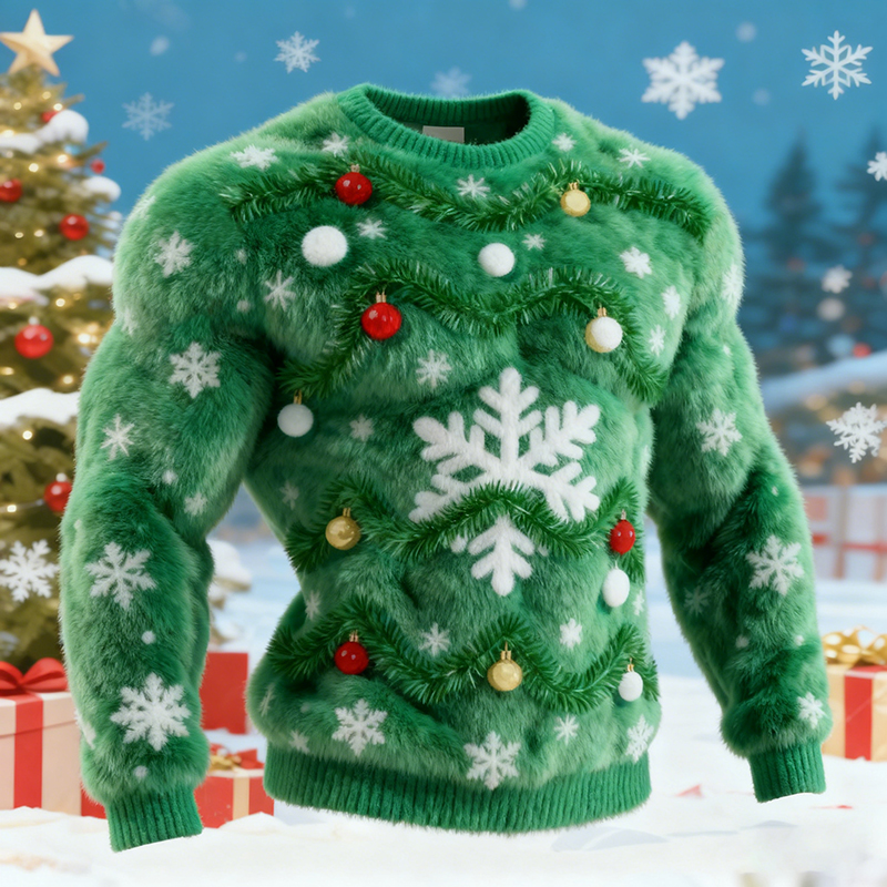 Men's Christmas Tree Decor Snowflake Print Plush Sweatshirt