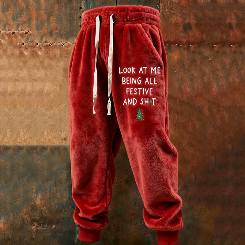 Men's Funny Slogan Plush Casual Pants