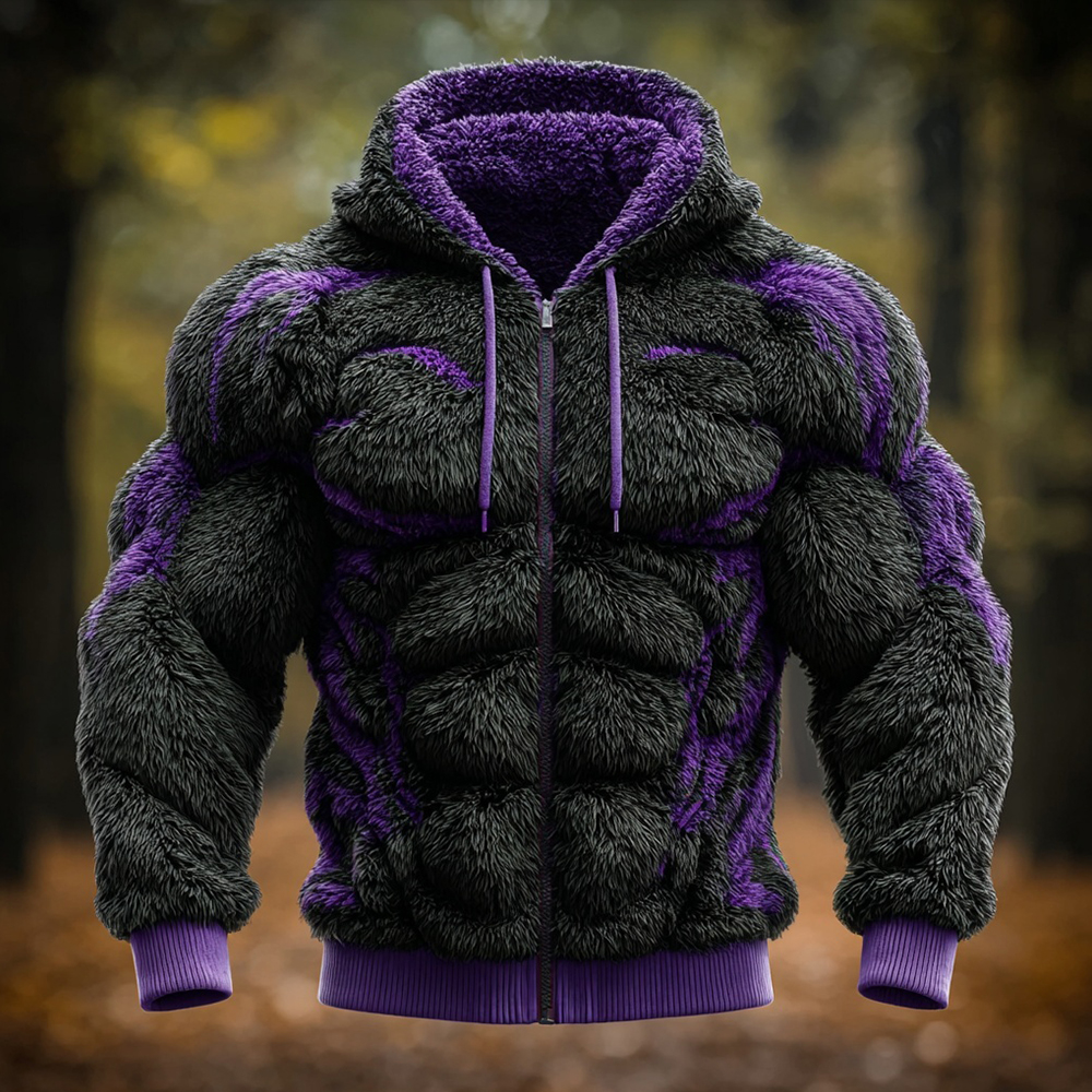 Men's Muscle Line Art Christmas Season Zip-up Plush Cardigan