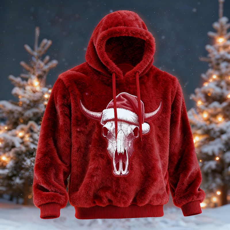 Men's Viking Traditional Bull Head Pattern Plush Hoodie