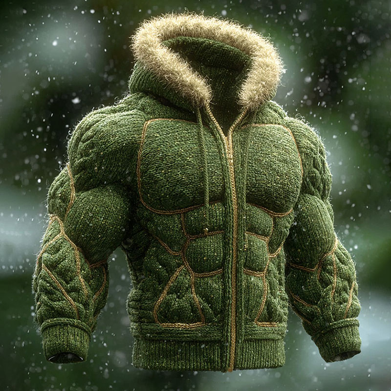 Men's Vintage Line Art Insulated Zipper Color Block Cozy Knit Hoodie