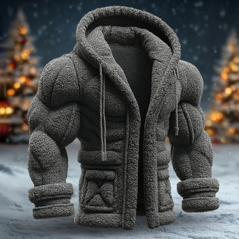 Men's Vintage Line Art Warm Casual Hooded Jacket