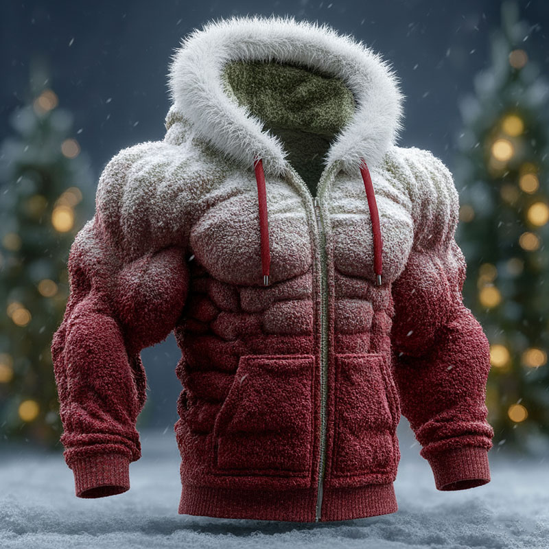 Retro Muscle Line Knitted Jacquard Zipper Fur Collar Cardigan