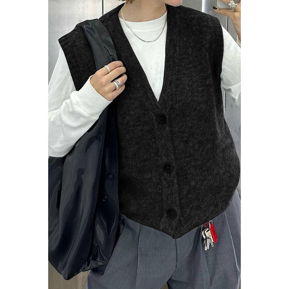 Solid V Neck Sleeveless Knitted Cardigan Vest
