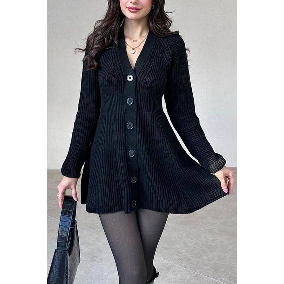 V Neck Waist Cinched Loose Fit Sweater Dress