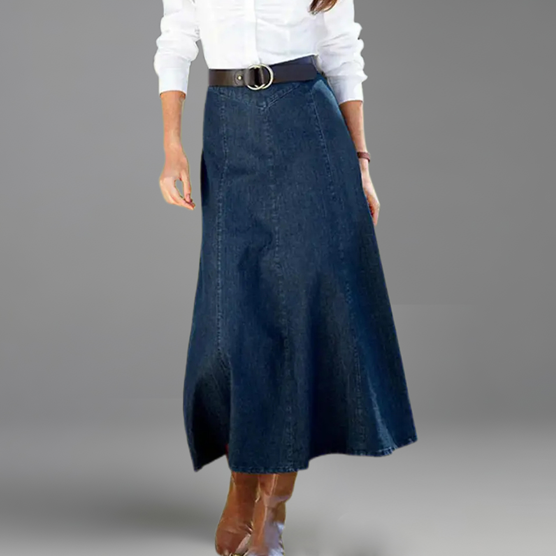 Women's Casual High Waist Denim A-Line Midi Skirt