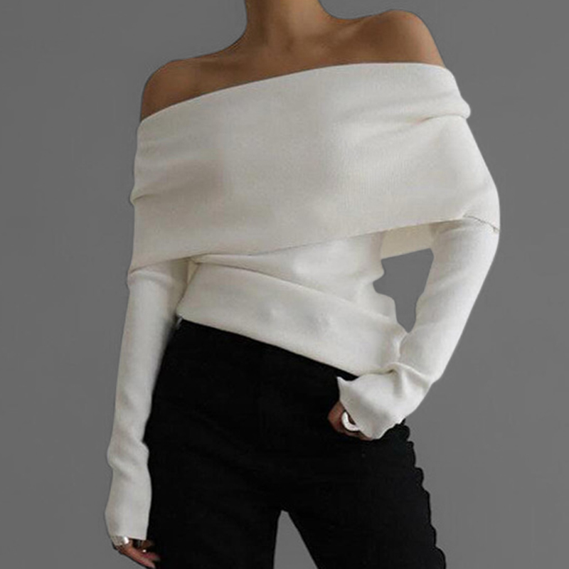 Women's Casual Off Shoulder Long Sleeve Knitted Sweater