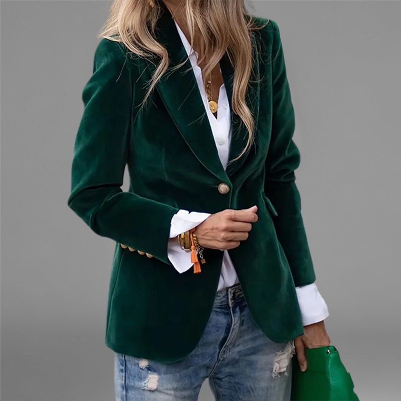 Women's Formal Peaked Lapel Long Sleeve One Button Velvet Blazer