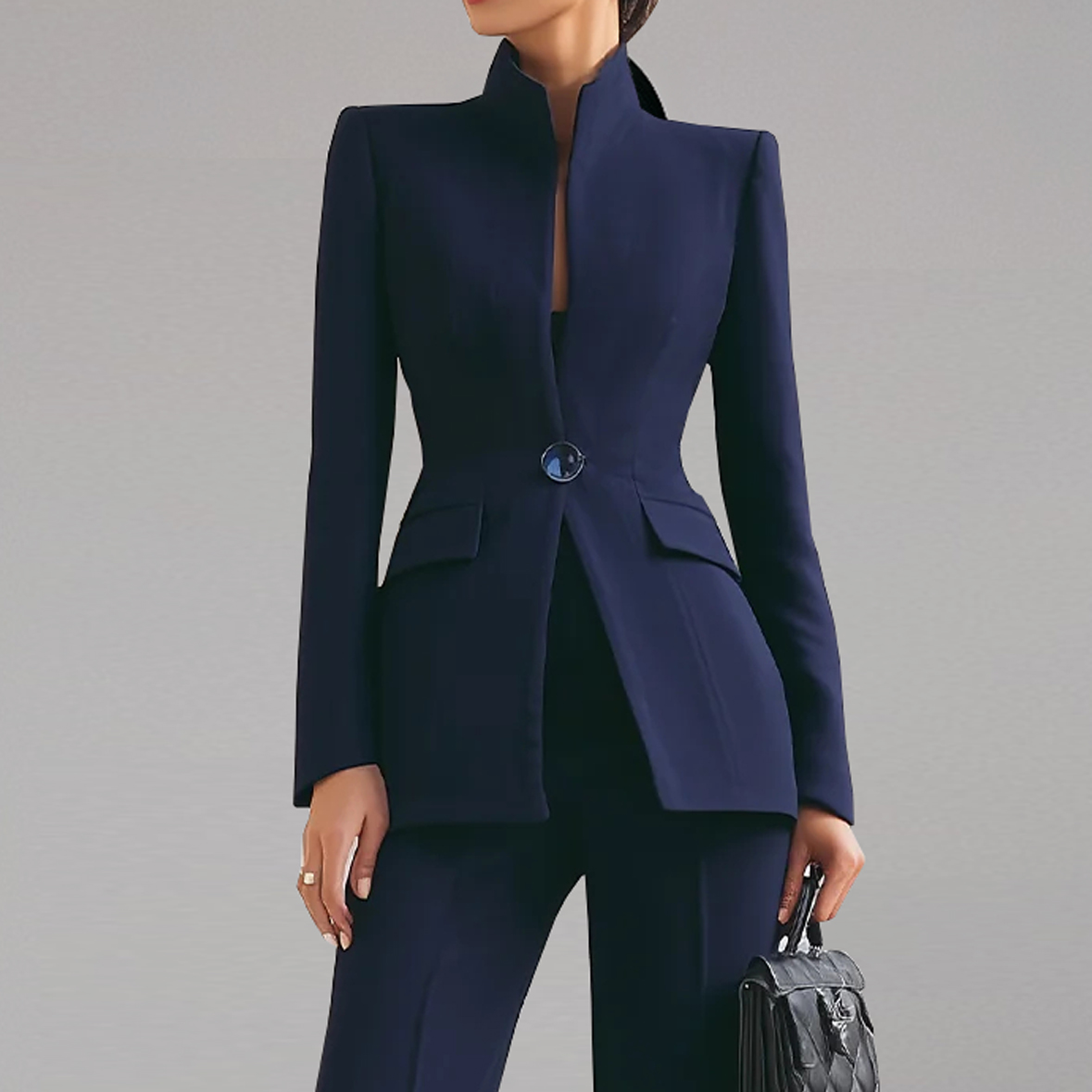 Women's Formal Stand-Up Collar Long Sleeve One Button Blazer