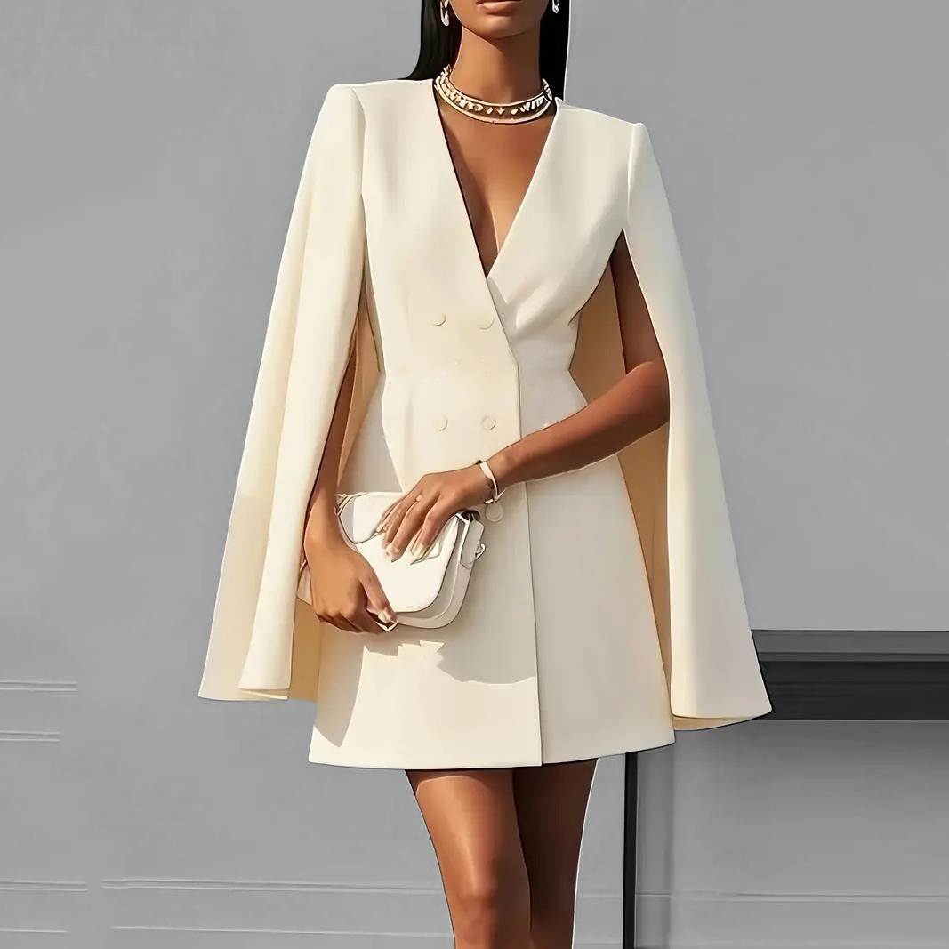 Women's Formal V Neck Double Breasted Cape Sleeve Blazer Mini Dress