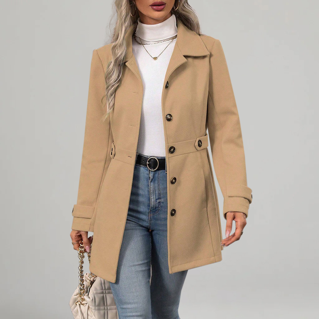 Women's Turndown Collar Buttons Long Sleeve Wool Blend Coat