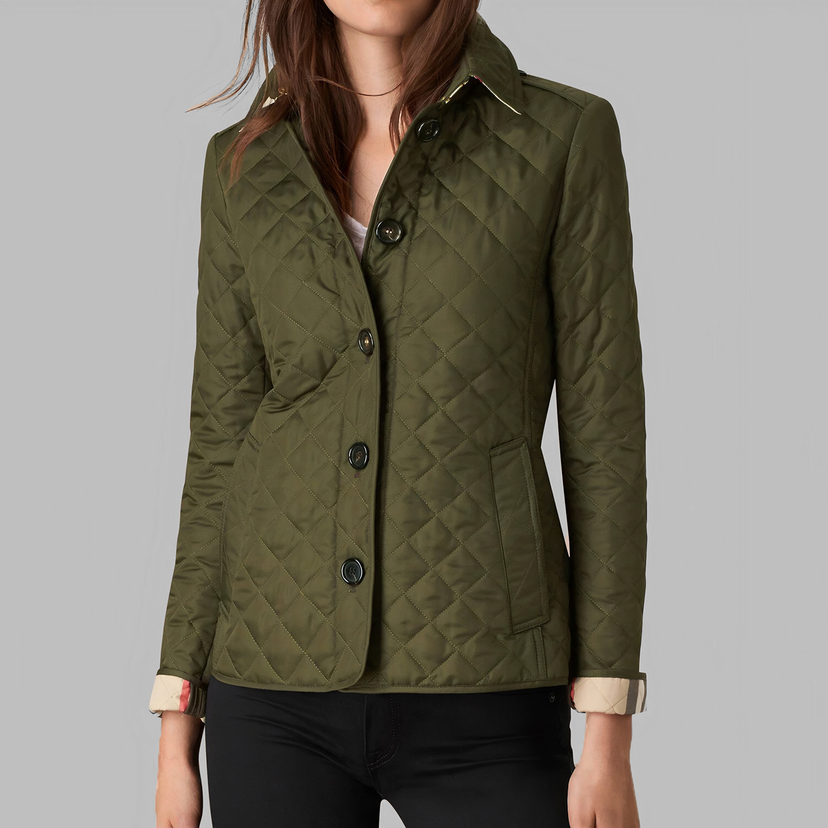 Women's Turndown Collar Long Sleeve Button Up Pockets Polyfilled Quilted Jacket