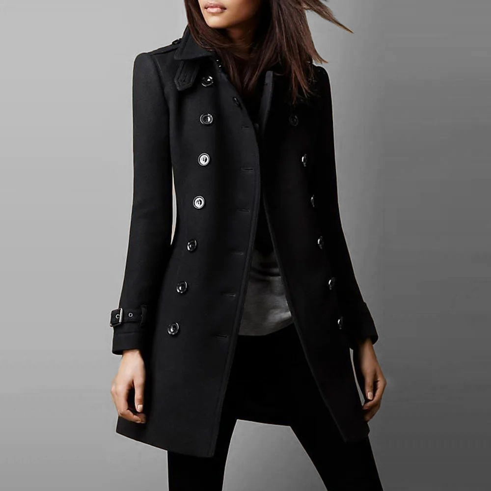Women's Woolen Turndown Collar Double Breasted Mid-Length Trench Coat